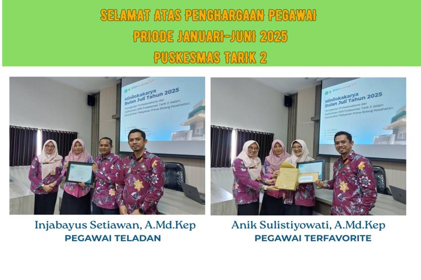 Puskesmas Tarik 2 Berikan Penghargaan Pegawai Teladan dan Pegawai Favorit Periode Januari – Juni 2025